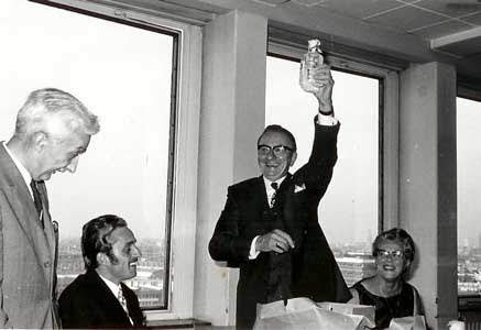 Links: Hans Fokker. Rechts: Hans Boterkooper, Dick de Brabander, Jan Botter, Pieter Broekman.